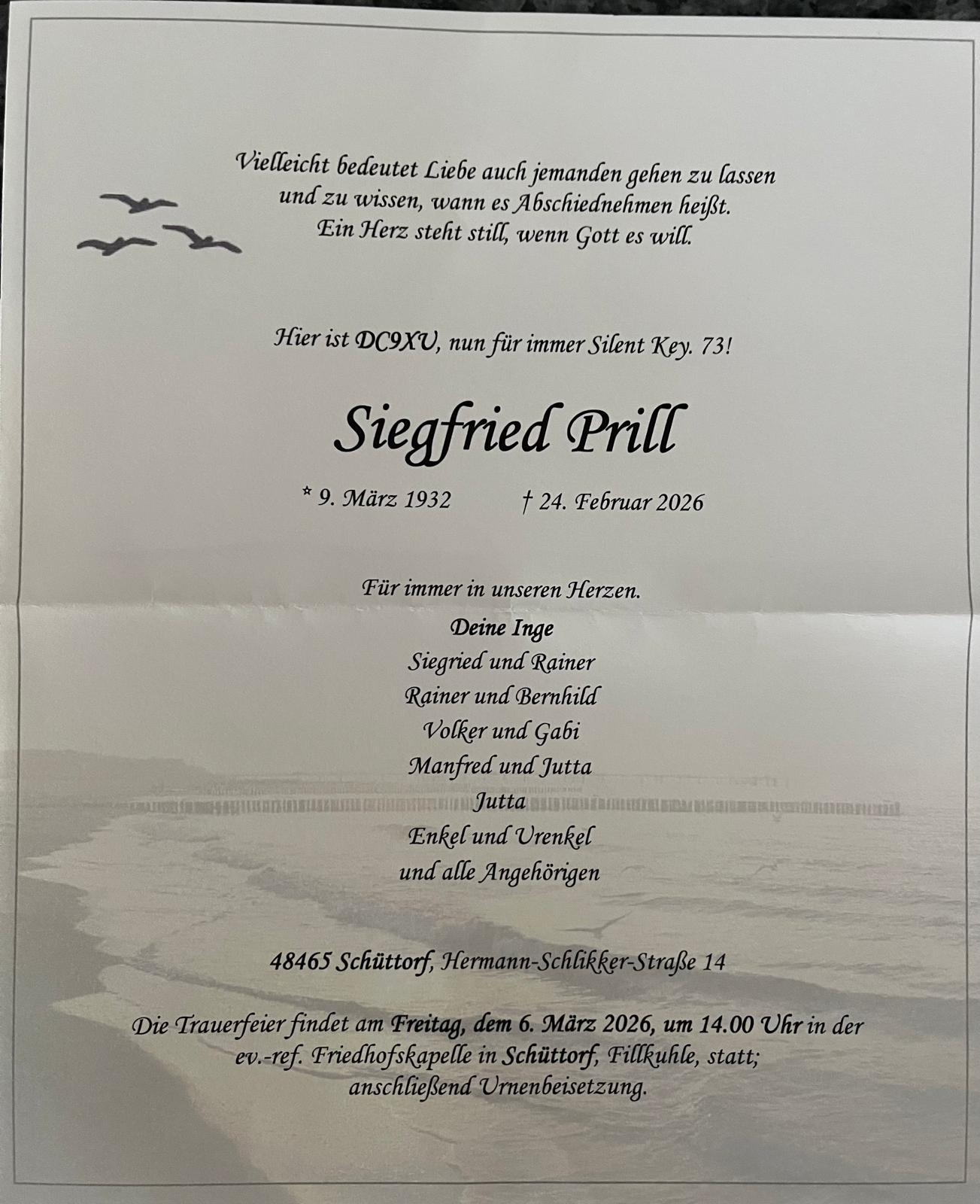 Siegfried Prill DC9XU aus Schüttorf ist am 23.02.2026 im Alter von über 90-zig Jahren verstorben.